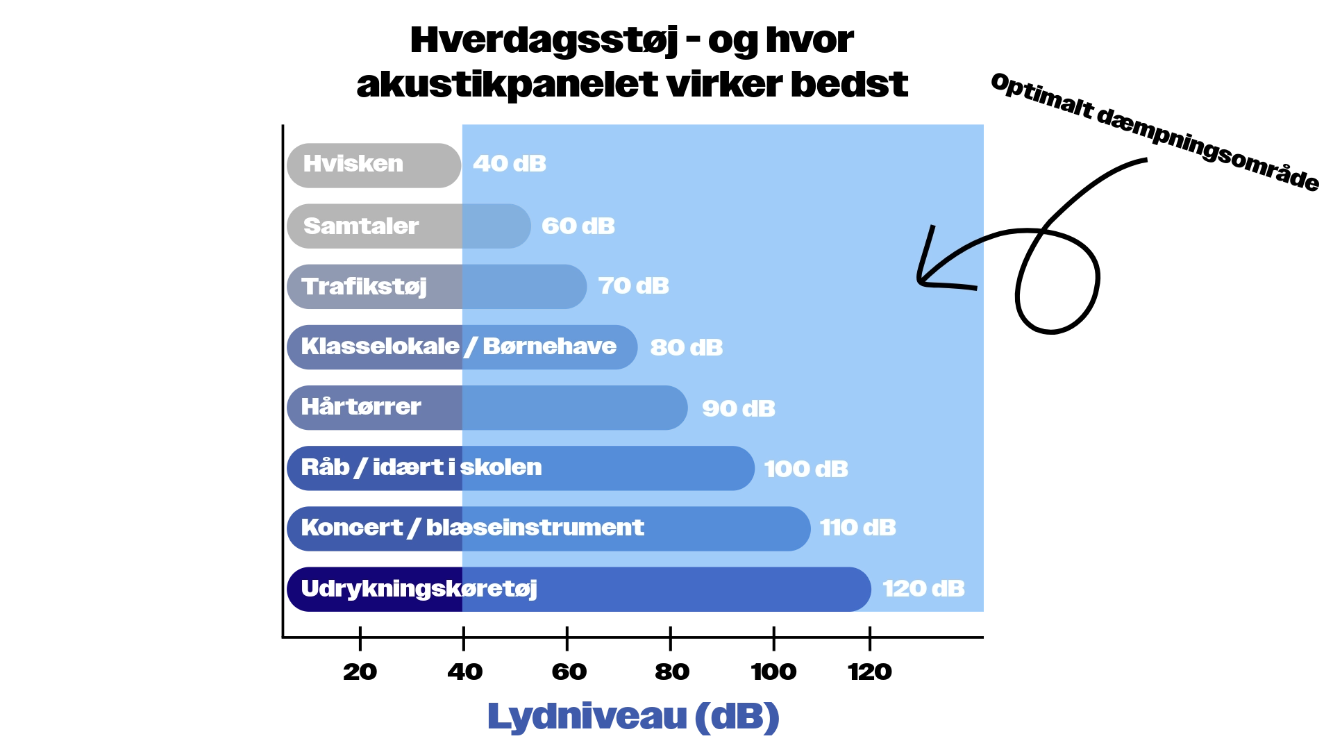 Akustikpaneler anvendes til at forbedre rummets lydmiljø ved at reducere efterklang og støjniveau. De monteres typisk på vægge eller lofter og kombinerer funktion med æstetik. Panelerne egner sig til både private hjem og erhverv, hvor god lyd er vigtig – fx i mødelokaler, kontorer eller stuer.