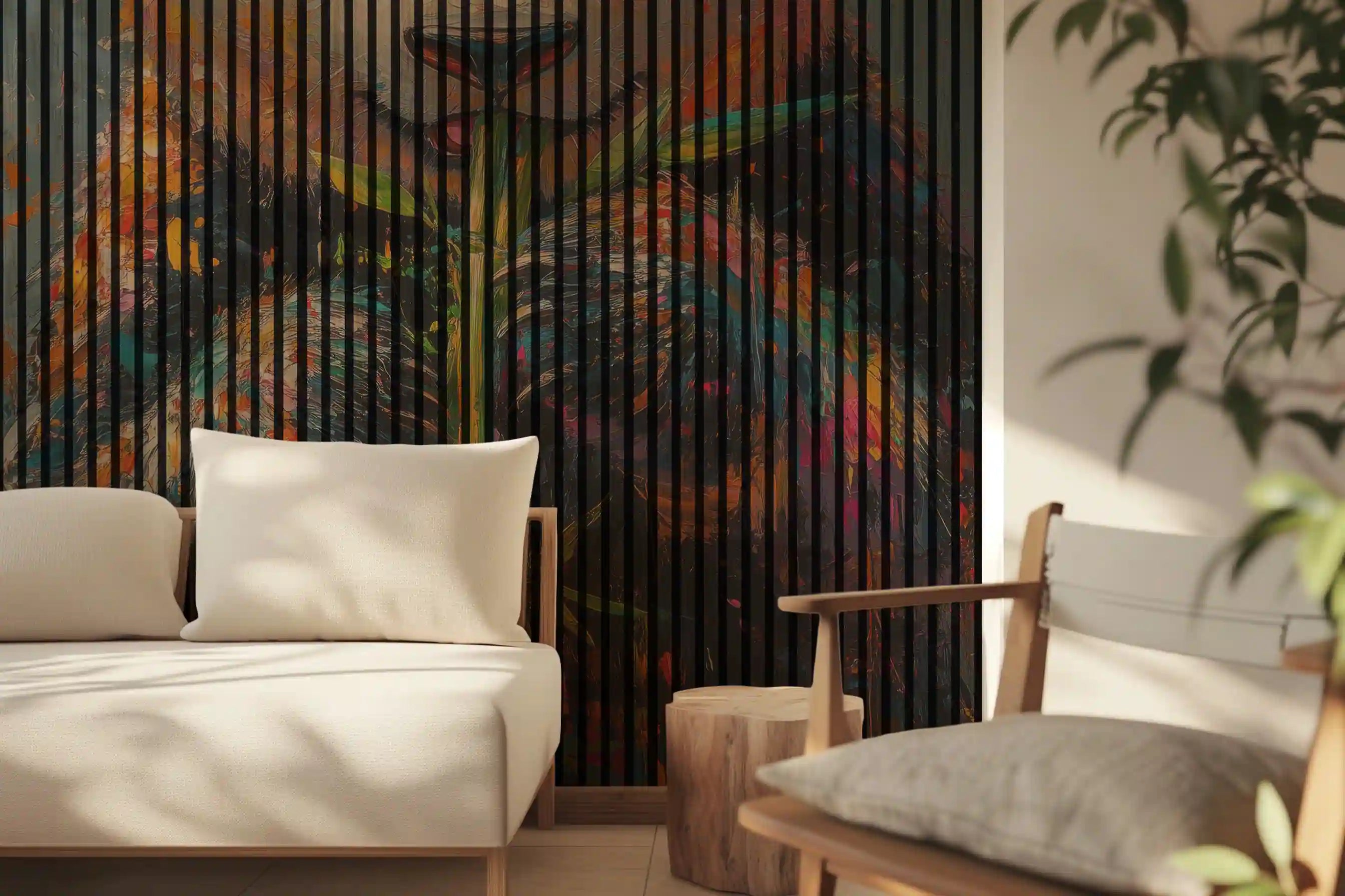 Denne akustikvæg er ikke kun et visuelt hit – den forbedrer også lydmiljøet. Væggen dæmper støj og efterklang, hvilket skaber ro og bedre koncentration. Ideel til stue, kontor, mødelokaler eller kreative rum. Fremstillet i slidstærke materialer og nem at montere direkte på væggen.